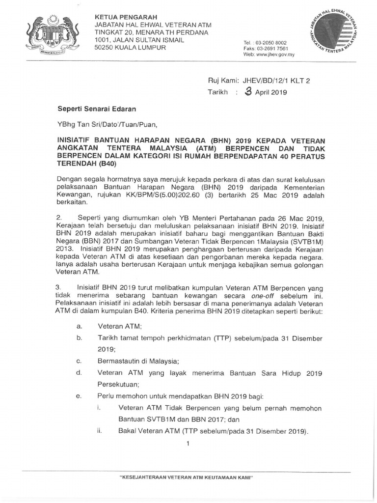 Jhev Atm Pemakluman Mengenai Bantuan Khas Kewangan Rm500 Kepada Veteran Atm Tidak Berpencen Yang Belum Mengemaskini Maklumat Facebook